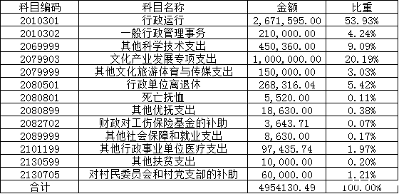 2021年度财政拨款支出495.41万元,主要用于以下方面:一般公共服务(类)支出288.16万元,占58.16%;科学技术支出45.04 万元,占9.09%;文化旅游与传媒支出115万元,占23.21%;社会保障和就业支出30.47万元,占6.15%;卫生健康支出9.74万元,占1.96%;农林水支出7万元,占1.41%。