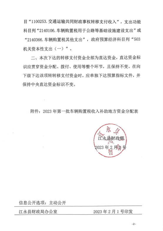 关于提前下达2023年第一批车辆购置税收入补助地方资金(直达资金)的通知