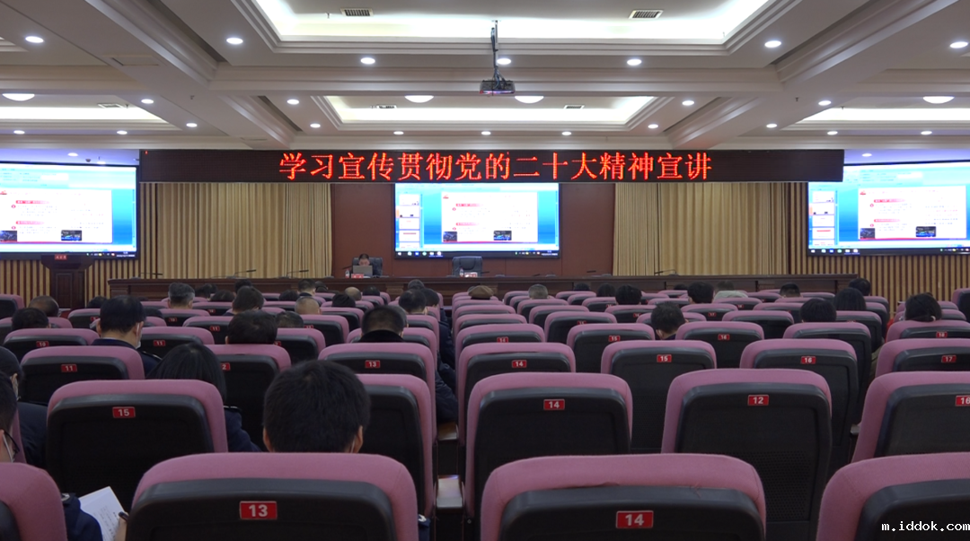 县委宣讲团成员、县委宣传部副部长周文从全面领会党的二十大的主题及主要成果、深刻认识新时代十年的伟大变革及其里程碑意义、不断开辟马克思主义中国化时代化新境界、牢牢把握新时代新征程中国共产党的使命任务、贯彻落实新时代新征程的战略部署、用新的伟大奋斗创造新的伟业六个方面对党的二十大精神进行了系统解读和重点阐述。宣讲会主题鲜明,联系理论和工作实际,语言平实,力求让广大干部职工听得懂、领会得深,具有很强的指导意义。