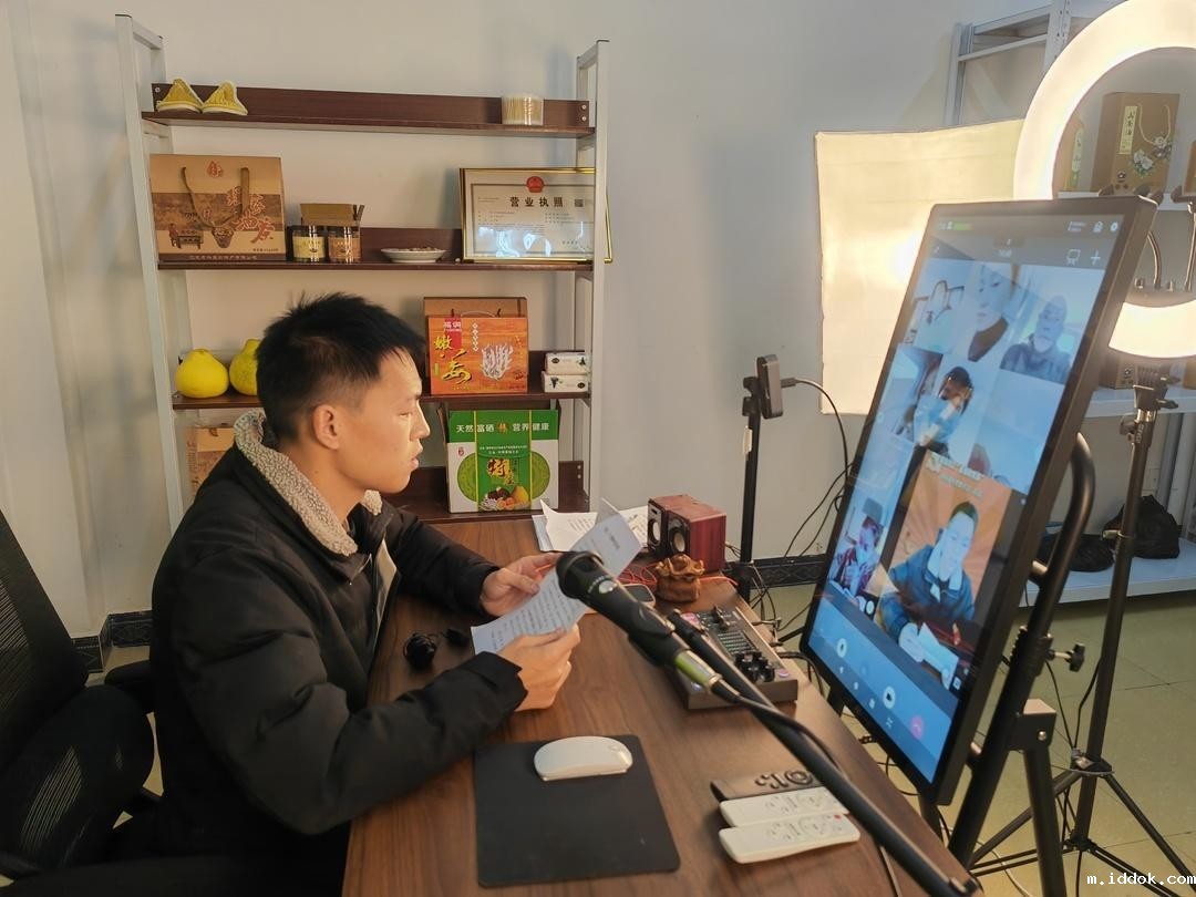 在西栎尾村村公所,党支部书记何源在党的二十大精神微宣讲的课堂上向党员们汇报直播小站的运营情况,针对部分党员外出务工的特点,有电商经验的村支书何源利用直播平台开启了线上“云”宣讲,让在外地的流动党员感受到了“离家不离党、流动不流失”的温暖。