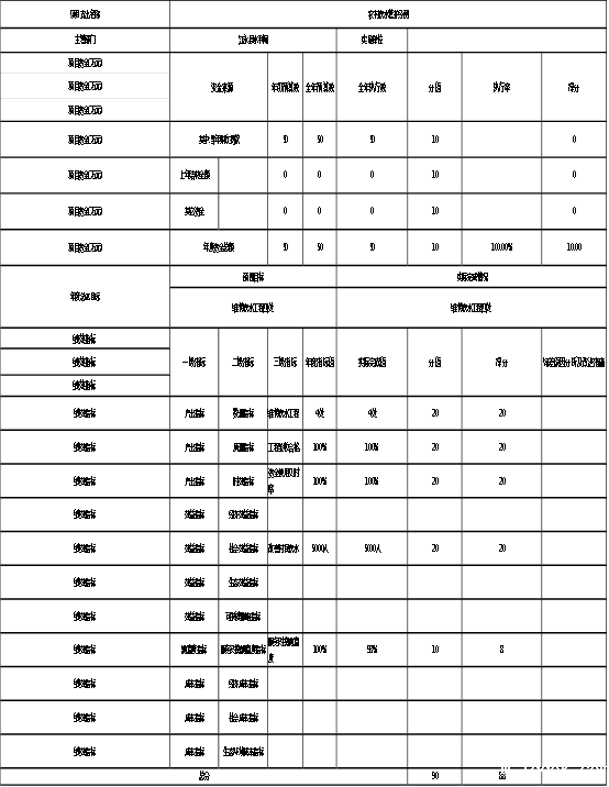 100%以下(含)计满分,每超出5%扣2分,扣完为止。没有楼堂馆所项目的部门按满分计算。 |