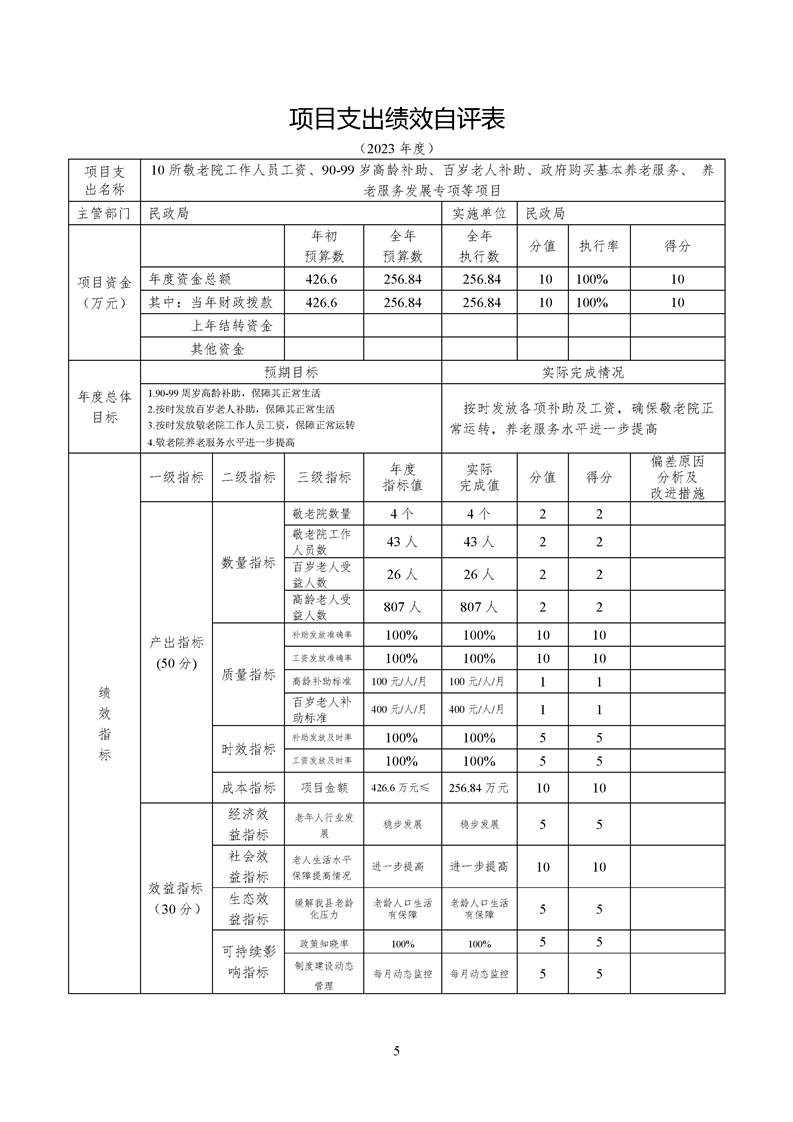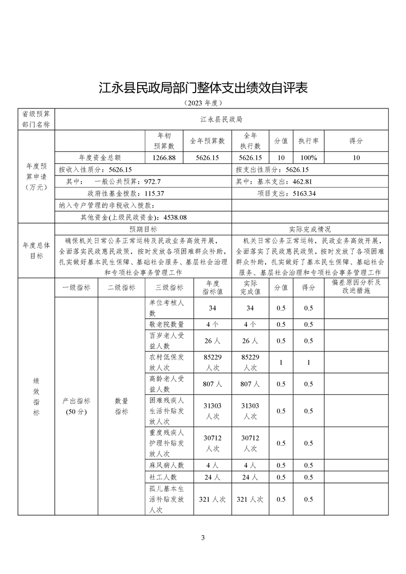 2023年度民政局财政资金绩效自评报告