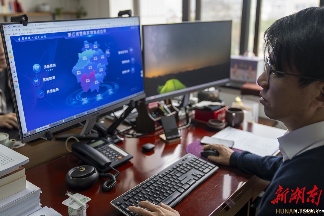 (浙江省经济信息中心专家团队在监测营商环境指标。湖南日报全媒体记者 童臻熙 摄)