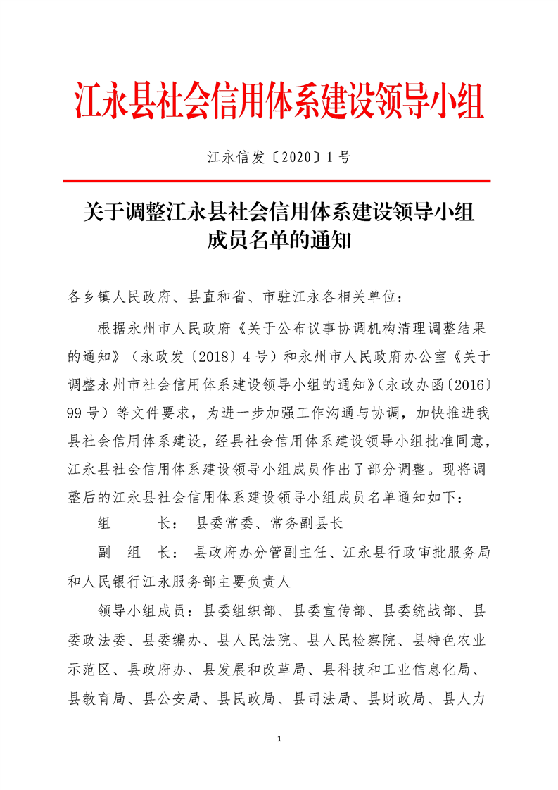 关于调整优米体育足球社会信用体系建设领导小组成员名单的通知