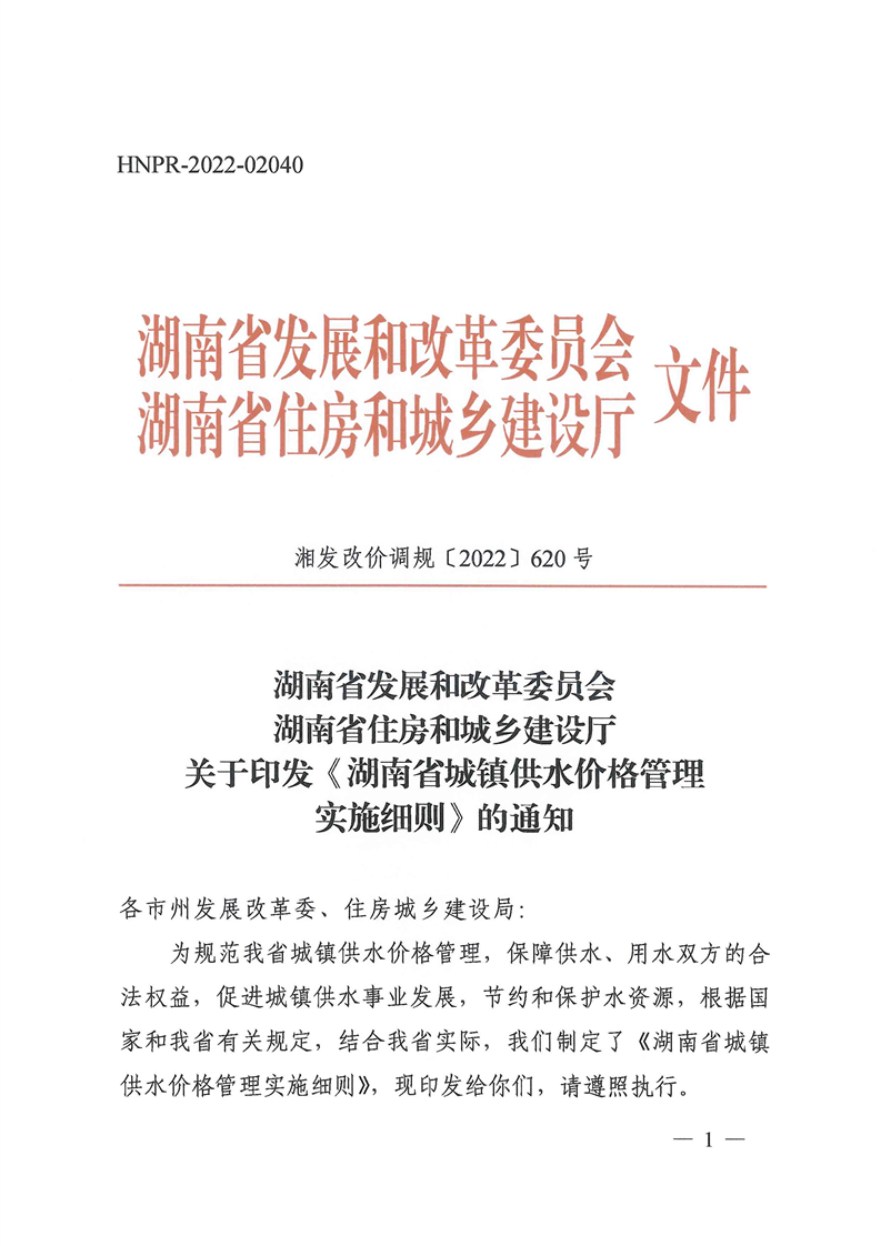 关于转发《湖南省发展改革委 湖南省住建厅关于印发湖南省城镇供水价格管理实施细则的通知》的通知