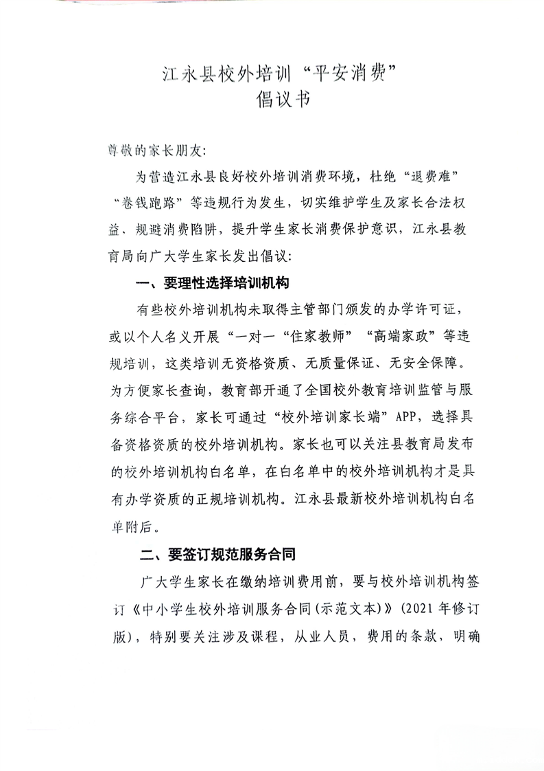 优米体育足球校外培训“平安消费”倡议书