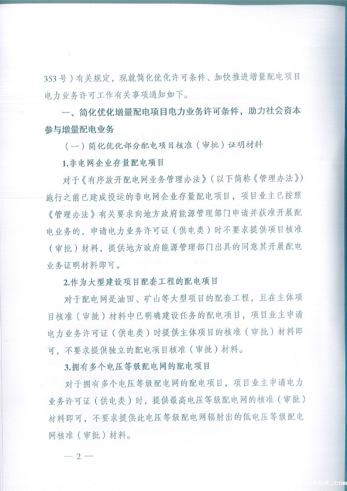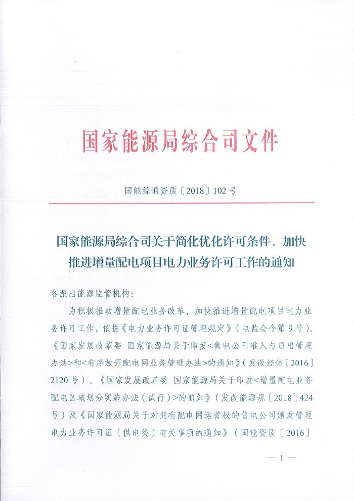 国家能源局综合司关于简化优化许可条件、加快推进增量配电项目电力业务许可工作的通知